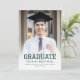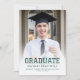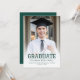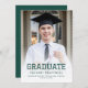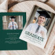 Graduation announcement featuring a custom photos on the front and back. The word "Graduate" appears in bold green typography with a sporty look ideal for the student athlete, with the graduate's name, school, and year of graduation below in sans serif font. The back features a horizontal photo, with space for details about your graduate's achievement and future plans in white text on a green background. A good choice for high school or college graduation.
