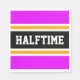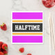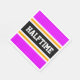 This sporty, athletic design features bold HALFTIME text inside a highlighted wide centre black stripe with white and yellow racing stripes against bright tropical pink outer stripes. The text can be personalised.