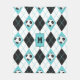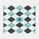 sporty turquoise black white soccer argyle pattern fleece blanket