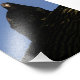 A fledgling bald eagle perched in shadow except for the side of its face which is lit by sunlight.