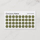 A stylish modern business/profile card template with a spot design. Thirty six aligned spots on the front with company name in the top left with type of business/quote on the right. Name and other details on the reverse in the same theme but with fewer rows of spots to accommodate the text. N.B The background colours of this card can be customised.