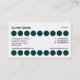 A stylish modern business/profile card template with a spot design. Thirty six aligned spots on the front with company name in the top left with type of business/quote on the right. Name and other details on the reverse in the same theme but with fewer rows of spots to accommodate the text. N.B The background colours of this card can be customised.