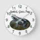 The clock did not take as long to arrive as I thought it might and was extremely well packaged. I didn't do the measurements so I didn't realize it is a little smaller than the average clock but that does not matter (just make sure you check if that's important to you).It is really nifty! It seems very solid and well made not flimsy at all. It has been going well and has kept good time in its few weeks on my wall. Nice product. Gets noticed too! Nicer in real life than the picture but true to the picture