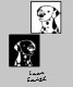 Two cute puppies, each in a black frame. Each puppy dog is black and white colouring with spots and dots. There is custom text on this design too.