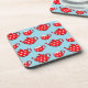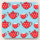 Spotty Red Teapot and Cups Blue Pattern Coaster