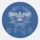 SPQR: Senātus Populusque Rōmānus. In Latin, Senātus is a nominative singular noun meaning "Senate". Populusque is compounded from the nominative noun Populus, "the People", and -que, an enclitic particle meaning "and" which connects the two nominative nouns. The last word, Rōmānus ("Roman") is an adjective modifying the whole of Senātus Populusque: the "Roman Senate and People", taken as a singular whole.
