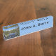 The product was just like it was in the pics, everyone at work loves it! Came on time and it was neatly packed. Bold and Clear. My name can be seen from far and it matches in color.
