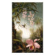 Martin Johnson Heade Orchids and Spray Orchids with Hummingbird print. Oil painting on canvas from 1890. Martin Johnson Heade remains one of the great hummingbird painters of all time. Heade spent time in diverse South American jungles painting a variety of different orchids and hummingbirds. Spray Orchids with Hummingbird features a purple breasted hummingbird sitting on a branch of spray orchids above a larger pink orchid. A great gift for fans of Martin Johnson Heade, orchid paintings, hummingbird paintings, and naturalist art.