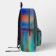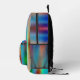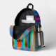 Orange, blue and blue green spray painted lines cover this printed backpack. Eye-catching design, a bit grungy, still looks nice.
