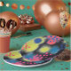 Set of eight 9” paper plates with an image of bold and colourful splashes of spray paint. See matching candy jar, espresso cup, flask, pitcher, teapot and coasters. See the entire Tubular 80s Plate collection in the FOOD/BEV | Dishes section.