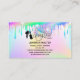 This modern script glitter Spray tan unicorn holograph rainbow glitter drips Business Card with spray tan machine blowing confetti is ideal for spray tan studio, mobile spray tanning studio, beauty salons, spray tans...
