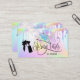 This modern script glitter Spray tan unicorn holograph rainbow glitter drips Business Card with spray tan machine blowing confetti is ideal for spray tan studio, mobile spray tanning studio, beauty salons, spray tans...