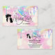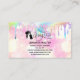 This modern script glitter Spray tan unicorn holograph rainbow glitter drips Business Card with spray tan machine blowing confetti is ideal for spray tan studio, mobile spray tanning studio, beauty salons, spray tans...