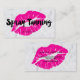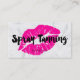 A modern, stylish Spray tanning business card with modern hand lettering style brush typography in black on a neon pink lips on a trendy and elegant white marble background. If you need any customisation, don't hesitate in contacting me