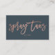 An elegant,modern, stylish spray tans logo business card with stylish script hand lettering style typography in faux rose gold foil on a simple customisable charcoal background. If you need any customisation, don't hesitate in contacting me