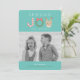 This funny "spread joy not germs" christmas/holiday photo card features a word " joy " with a candy cane, greenery wreath with ribbon, and red-nosed reindeer with mask on a turquoise blue background. The reverse side features a turquoise blue background with white snow patterns. Personalize it for your needs. You can find matching products at my store.