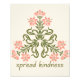 vintage pink growing flowers illustration with green motivational text says "Spread kindness", this bouquet floral design is for flower lovers and kind people.