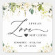 Spread Love Greenery Eucalyptus White Roses Wedding Sanitizer Square Sticker