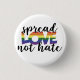 Show your support for LGBTQ Pride with this trendy spread LOVE not hate button with black script font and rainbow coloured love.
