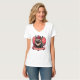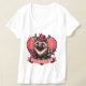 The shirt is really cute. Love the little, long haired chi. The fit is just right. I got a small (5'5" - 112), and it's not body hugging which is what I prefer, but not overly loose. Hope it doesn't shrink. I like the style, too; prefer a V neck. The only thing I would change is the position of the pup. As is he is directly on my left breast. It would've looked better just a bit up toward the shoulder. The design is fine. It's a sweet chi, and I hope it stays that way without drying out or cracking in the wash. It looks as if it should last. I'm pleased. Thanks for the long hairs!!