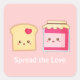 A whimsical, quirky and kawaii cartoon of a slice of toast and strawberry jam. Jam is applied in a heart shape on the bread. The sweet idea behind the doodle is spread love like jam. A cute food doodle that is sure to amuse friends and family.