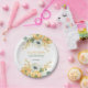 Elegant floral birthday party paper plates featuring watercolor orange and white anemone flower with mimosa greenery arrangement. All texts are editable. Matching items available in store!
