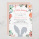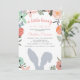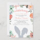 Adorable spring themed baby shower invitations for your little bunny on the way feature a boho floral border and a grey bunny ears silhouette.