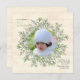 A delicate, watercolor, wreath with white berries and flowers and light green leaves is featured against a distressed cream background. The round photo window is ready for your child's picture. <a href='http://www.freepik.com/free-vector/floral-wreath-design_888901.htm'>Designed by Freepik</a>. <br/><br/>The card is easy to customise with your wording, font, font colour, paper shape options and choice of six paper types.<br/><br/>Not exactly what you're looking for? All our products can be custom designed to meet your needs at no extra charge.<br/><br/>Simply contact us at askcottonlamb@gmail.com<br/><br/>Coordinating products available: Just ask us!