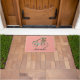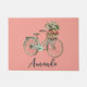 Your name on the doormat, pink background with the watercolor illustration of a spring biclycle green with apples in a basket.