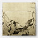 Elegant ,whimsical ,colourful floral design with a cute spring bird on the branches of a flowering tree,blooms,blossoms in ,brown,sepia colours created with digital re-elaboration of an antique oriental miniature.