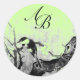 SPRING BIRD AND FLOWER TREE MONOGRAM,green Classic Round Sticker