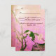 Elegant ,whimsical ,colourful rsvp design with a cute spring bird on the branches of a flowering tree,blooms,blossoms in pink ,brown,fuchsia colours created with digital re-elaboration of an antique oriental miniature.