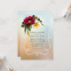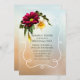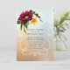 Pretty Spring inspired wedding rehearsal dinner invitation done in a peach and light blue mottled background. A white decorative framed area is decorated with a yellow daffodil and a maroon coloured daisy like flower. Lovely invitation the couple will cherish with all their wedding memories. Chose you favourite card stock and invitation shape. Matches our Spring Blooms wedding set.
