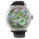 Fresh springtime cherry blossoms brighten the face of this pretty watch. Digital painting from a photograph.
