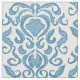 This damask like half drop repeat pattern in aqua ocean blue and white, has the element motif by Kristie Hubler. Scroll leaves flowing in repeat