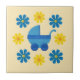 Spring blue baby stroller, yellow, blue flowers tile
