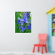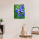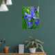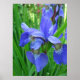 Spring blue iris flowers and green leaves poster