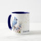 This pretty personalised mug features a beautiful image of a Blue Jay perched on a tree branch with pretty pale blue and pink blossoms. The image is printed twice on the mug, with your name or other text between them. There's a smattering of tiny gold confetti to add a bit of sparkle. A pretty springtime scene!