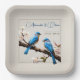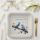 Personalise a unique paper plate for wedding reception guests with a set of Spring Bluebirds Wedding Paper Plates. Paper Plate design features a pair of bluebirds resting on a wooden branch with spring blooms against a paper textured background. Personalise with the groom and bride's names along with the wedding date. Additional wedding stationery available with this design as well.