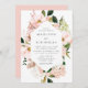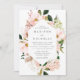 Elegant, spring floral wedding invitations featuring your wedding details framed by watercolor blush pink hydrangeas, lush green leaves, and faux rose gold foil accents. Personalise the blush floral wedding invitations by adding your names and wedding details. The spring wedding invitation reverses to a solid blush pink background. Perfect for spring and summer weddings, garden weddings, etc.