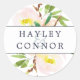 Chic floral wedding stickers are a perfect way to finish your invitation envelopes, favours and more. Designed to match our Spring Blush wedding collection, round stickers feature a bouquet of watercolor rose and peony flowers in pastel shades of blush pink, cream and green, with your names in the centre.