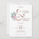 A modern glamourous spring summer fall wedding invitation featuring a watercolor blush pink magnolia flower with green foliage, and eucalyptus leaves together with a beautiful big faux rose gold copper metallic glitter ampersand and a classy modern bold contemporary typography script on a clear white background. +++++++++++ Easy to personalise with your details! ++++++++++ Suitable for modern boho floral wedding celebrations and receptions, outdoor garden, or backyard elegant parties.