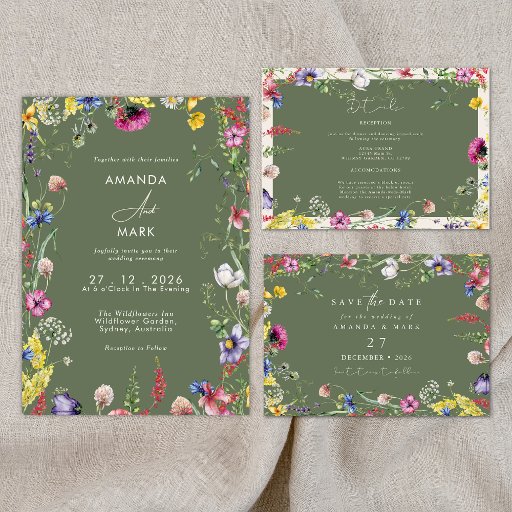 Spring Boho Chic Colorful Wildflower Wedding Invitation