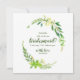 Simple and classy, these bridesmaid party invitations are the perfect way to invite all of your friends to play a role in your big spring or summer wedding. Features greenery around a frame on the front that surrounds green text and a pattern of the dill, mint, rosemary, thyme, parsley, olive branch, and other leaves. The back is covered by a pattern of the medicinal herbs.