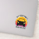 Cool custom road trip sticker for spring break or summer vacation with your family or friends. Personalize with your last name or group above the retro sunset and car silhouette. Perfect for a trip to a cottage or across the country. Drive off into the sunset.