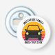 Cool custom road trip bottle opener for spring break or summer vacation with your family or friends. Personalize with your last name or group above the retro sunset and car silhouette. Perfect keepsake for a trip to a cottage or across the country. Drive off into the sunset.