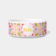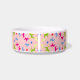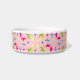 This is a heavy, durable bowl decorated with Tibbies of many colors, the perfect size for hungry/thirsty Tibs. The design is interesting and printing clear.