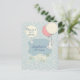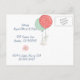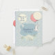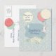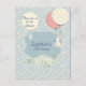 Adorable and editable birthday invitation postcard design , perfect for a spring and summer birthday with little bunnies and air ballons on lightblue floral background!