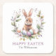 Spring Bunny Easter Egg Wreath Personalised Square Paper Coaster