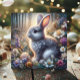 Spring Bunny Purple Pink Flowers Watercolor Easter Holiday Card